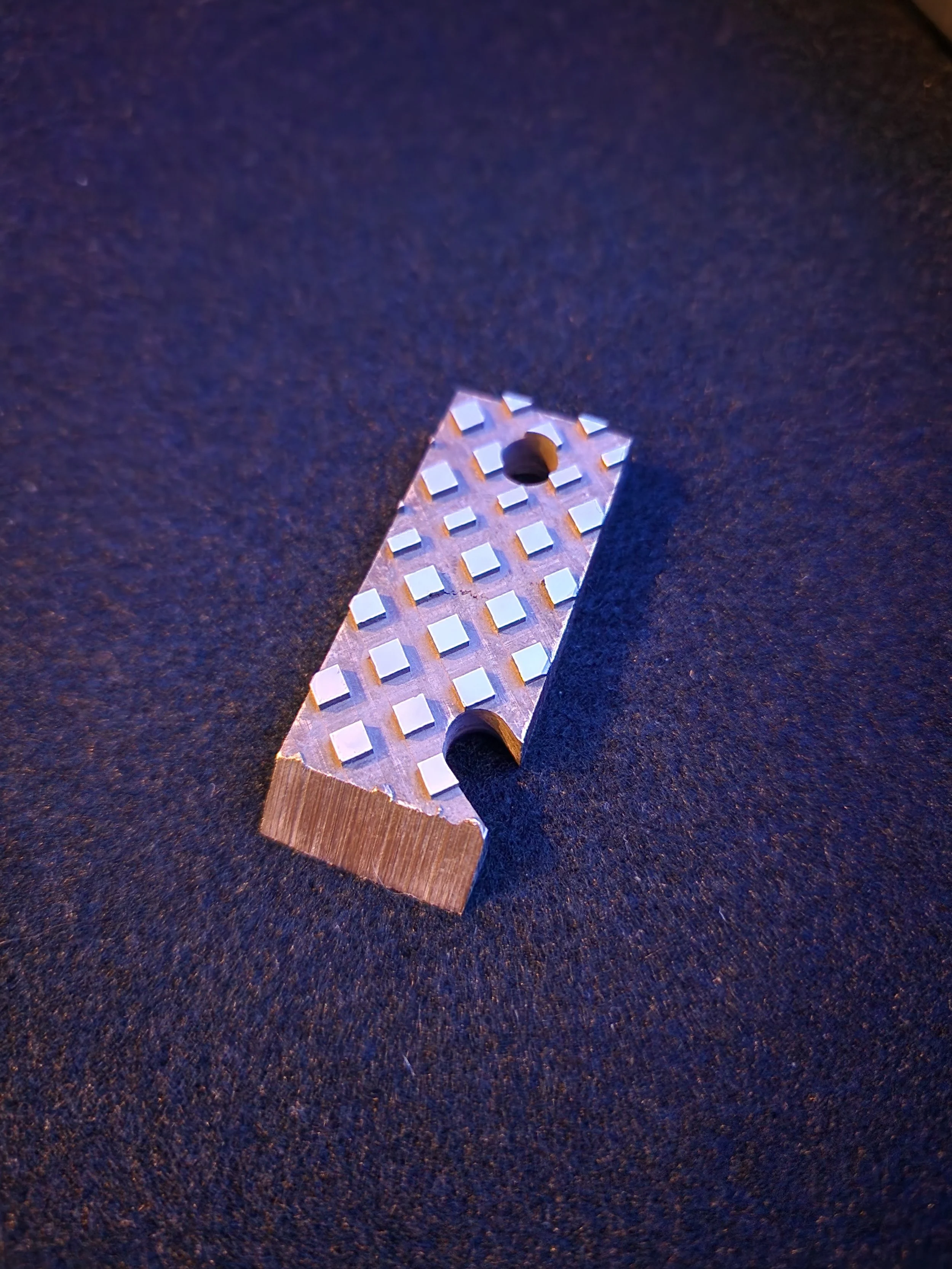 This custom, one-of-a-kind church key features a machined pattern. Caution! This product contains sharp edges. We’re calling it our tactical grip. Made from rose brass this bottle/soda-can opener pendant makes an excellent gift for that Special Someone. All our products are upcycled from metals recovered from construction and industry. From pipe to tool, we strive to bring you only the highest quality metal implements.
